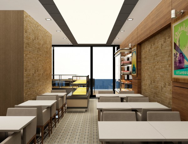 Modern bir tasarım diline sahip olan mekân belirgin bir asalet hissiyatı uyandırırken, özel tasarım mobilyalarıyla dikkat çekiyor. Açık renk mobilyaların duvar ve sütunlardaki tonlarla dengelendiği mekânda, bütün bu modern hava ahşap masalar ve karşı duvardaki sıcak tonlarla dengeleniyor.